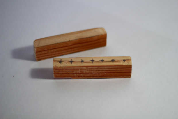 Debe ser muy cuidadoso aquí. Marque los lugares donde usted se perforación colocando los clavos en las ranuras de la madera. Tiene que haber cantidad suficiente de clavos y también suficiente espacio entre ellos.