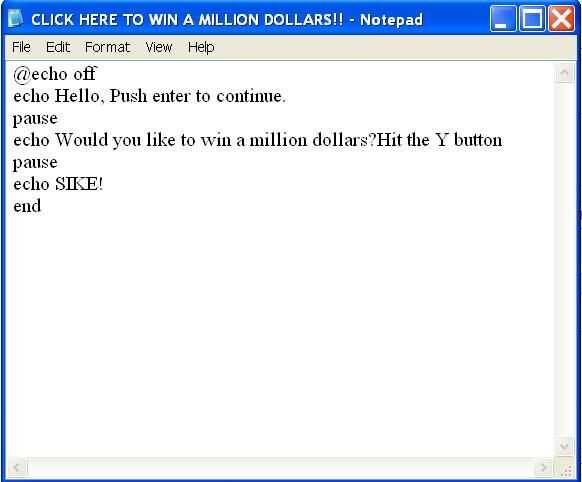 echo [mensaje aquí, ex: quieren para ganar un millón dólares?]