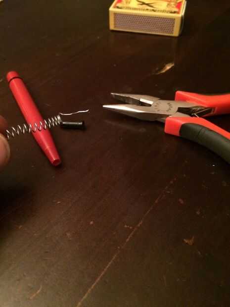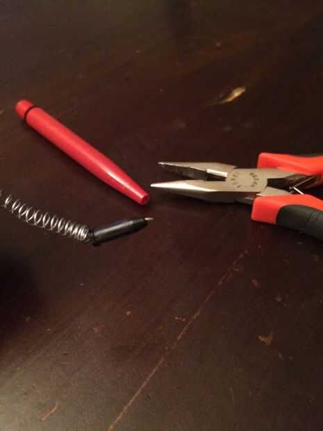 Nota: en la foto ver que mi bolígrafo tenía una pequeña punta negra en el punto, así que pegué mi primavera que primero. No es una cosa esencial a utilizar.