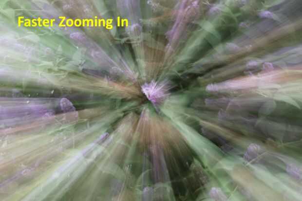 Usted puede jugar con ir lento o rápido y de zoom a zoom etc.. Jugar a ver qué efectos trabajan mejor para usted. Incluso podría subir a sistema manual y jugar con la velocidad de obturación y la abertura para ver si más luz hará la imagen más eficaz. Tal vez piense en hacer un zoom gradual (como en mi imagen 'Entre Zoom').