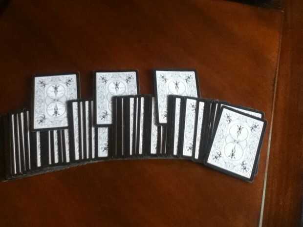 para todos este truco que se necesita es:Baraja de cartasEso es todo!!!Paso 1: Paso 1Seleccionar dos conjuntos de cartas del mismo color.Paso 2: Paso 2Poner una de las tarjetas en la parte inferior de la cubiertaPaso 3: Paso 3 Poner la tarjeta que es