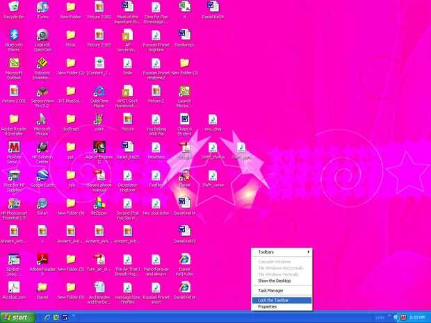 Si tu barra está bloqueada entonces tendrás que desbloquearlo. Mover el ratón la barra de herramientas donde tiene el para arriba y abajo símbolo y haga clic y arrastre hacia abajo. Para cambiarlo de nuevo, haga clic derecho en el escritorio ir a organizar iconos como y haga clic en el botón de Mostrar iconos del escritorio otra vez. Para hacer la barra de herramientas reaparecer arrastra hacia arriba. Ahora que sabe cómo ir y broma a alguien con este truco.
