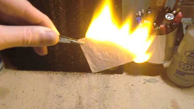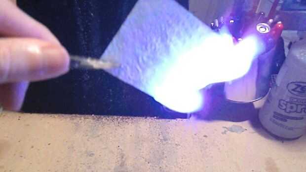 He intentado este proceso con cinco de estos productos químicos. Todos ellos para quemar al aire libre, pero sólo dos de ellos trabajan cuando se carga la hoja de papel flash impregnada con ellos en el lanzador. Grabé un video de prueba de quemar papel flash impregnada de estas sustancias químicas y había incrustado en este correo.