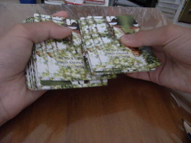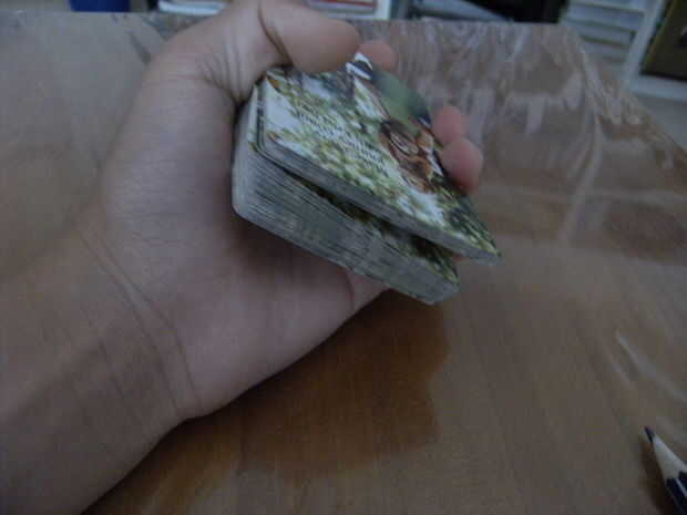 PIC 1: Extiende las cartas en el pack con las tarjetas originales y trucadas. En la imagen, los dos boca abajo las tarjetas lo más cerca posible de mi pulgar son el original 2 de corazones entonces los 2 trucadas de corazones.
