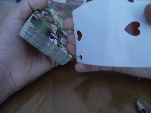 PIC 1: Fusileros de las tarjetas y dar algún discurso sobre tarjetas fantasmales que flotan a la parte superior de las cubiertas. Una vez en las últimas dos cartas, mostrarles las tarjetas.