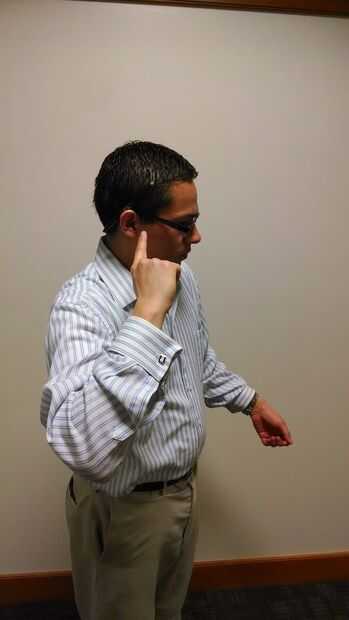 Explica a todos cómo ha desaparecido la pluma girando y mostrando la pluma detrás del oído.