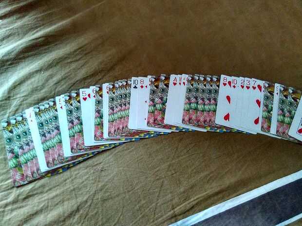 Cara todos las tarjetas será rojo o negro. Habrá dos tarjetas enfrentadas. Hacer una cinta extensión punto ot la tarjeta y recogerlo y luego voltear el ya tarjetas de la extensión y el punto a otra enfrente de tarjeta a partir de ahí.