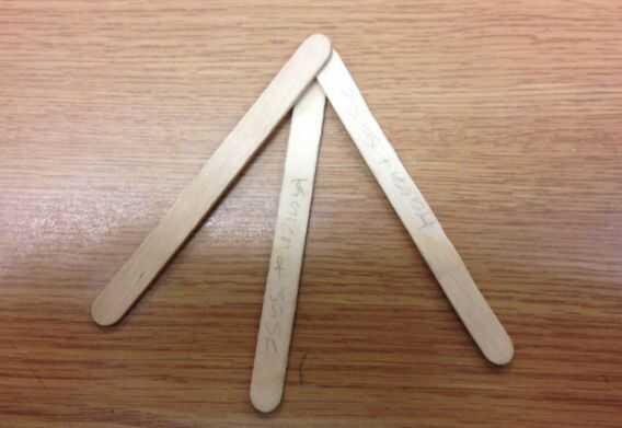 Haz cinco palitos, coloque tres delante de ti como en la foto.