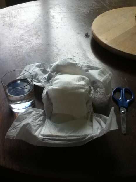 necesita pañales desechables 1 un par de scissers y un vaso de agua (puede ser cualquier bebida