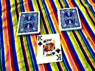 truco de tarjeta fácilPaso 1: tomar todos gatos, ases, Reyes y reinas de la baraja. puso en sus pilas.Paso 2:colocar las tomas dePaso 3: establecer las reinasPaso 4:establecen los ReyesPaso 5: establecer los asesPaso 6: ahora debe haber cuatro pilas