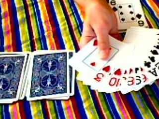 truco de tarjeta fácilPaso 1: tomar todos gatos, ases, Reyes y reinas de la baraja.  puso en sus pilas.Paso 2:colocar las tomas dePaso 3: establecer las reinasPaso 4:establecen los ReyesPaso 5: establecer los asesPaso 6: ahora debe haber cuatro pilas