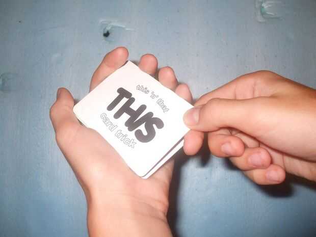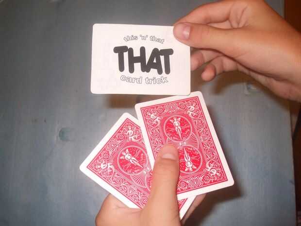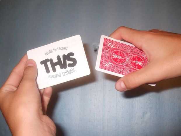 2-separe las tarjetas mostrando la espalda de todos tres, saca la tarjeta del media (ace), lo nuevo después de mostrar al público.