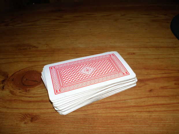 truco de tarjeta fácilPaso 1: tomar todos gatos, ases, Reyes y reinas de la baraja. puso en sus pilas.Paso 2:colocar las tomas dePaso 3: establecer las reinasPaso 4:establecen los ReyesPaso 5: establecer los asesPaso 6: ahora debe haber cuatro pilas