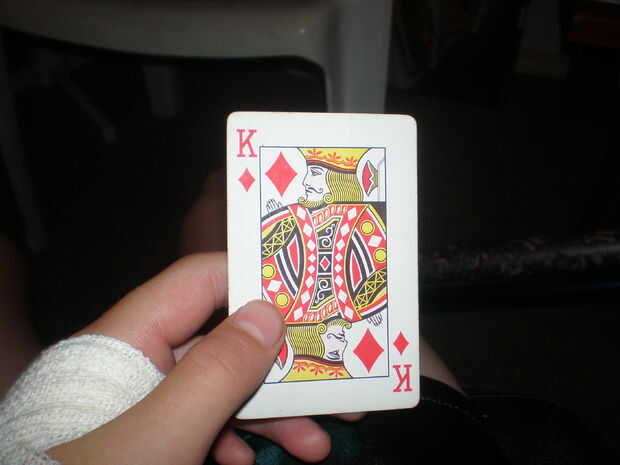 truco de tarjeta fácilPaso 1: tomar todos gatos, ases, Reyes y reinas de la baraja. puso en sus pilas.Paso 2:colocar las tomas dePaso 3: establecer las reinasPaso 4:establecen los ReyesPaso 5: establecer los asesPaso 6: ahora debe haber cuatro pilas