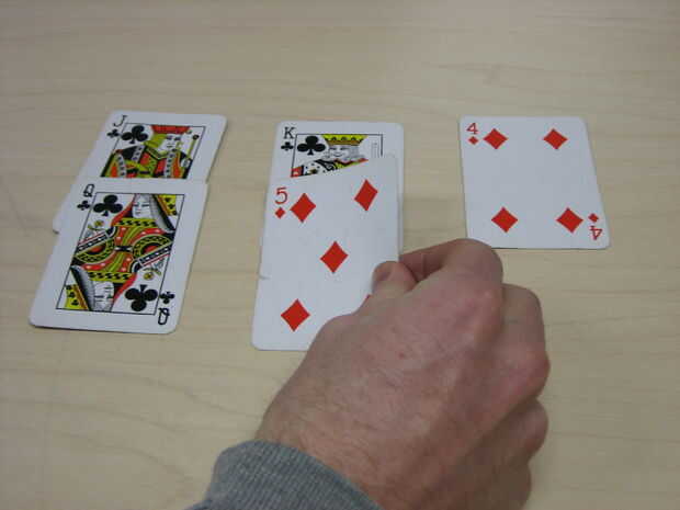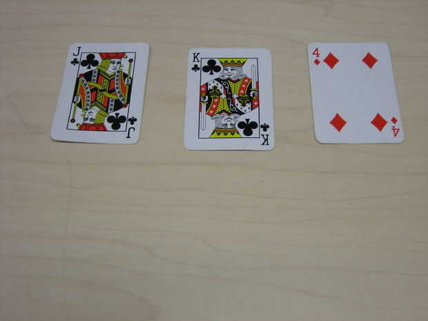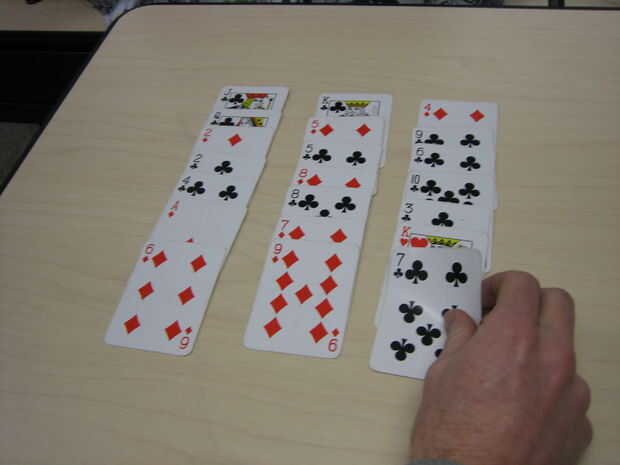 En primer lugar, poner las primeras 3 cartas en una fila de izquierda a derecha. (cuadro 1)