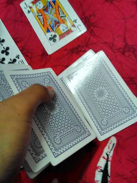 en mi caso las tarjetas de cinco tonos, diez de los clubes y jack de clubes, pero pueden ser cualquier tarjeta pero la primera tarjeta serán cada vez cinco debido a la configuración o arreglo.