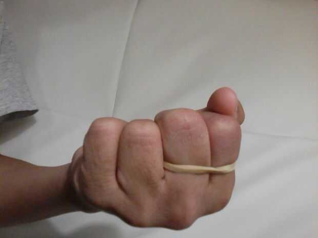 Asegúrese de que la parte delantera de la mano se enfrenta a la audiencia, como se muestra en la primera imagen. Para llevar a cabo la ilusión, extender los dedos de la mano en que es la banda de caucho, excepto el pulgar, como se muestra en la segunda imagen. Al hacer esto, mantenga la parte posterior de su mano frente a la audiencia. El interruptor se ha hecho!
