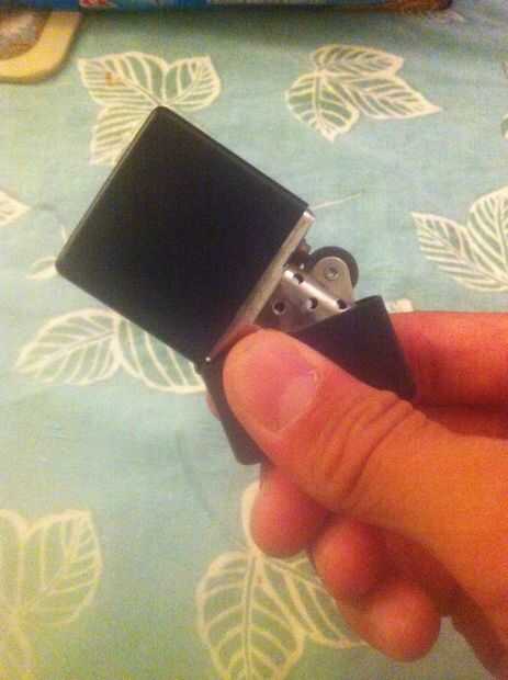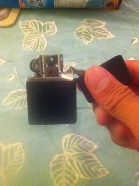 Paso 1: Espera más ligero entre los dedos así... La bisagra hacia abajoPaso 2: Pull apart tapa exponiendo más ligero y pedernalPaso 3: Gire para el lado trasero del alumbrador quede frente a usted... AsíPaso 4: Toque más claro en los dedos para que e