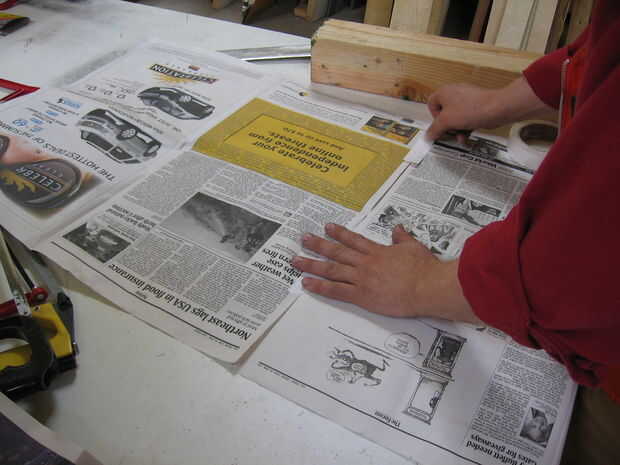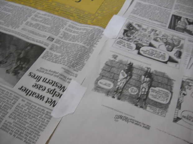 Obtener dos hojas de periódico. Los ponen al lado del otro y la costura de la cinta.