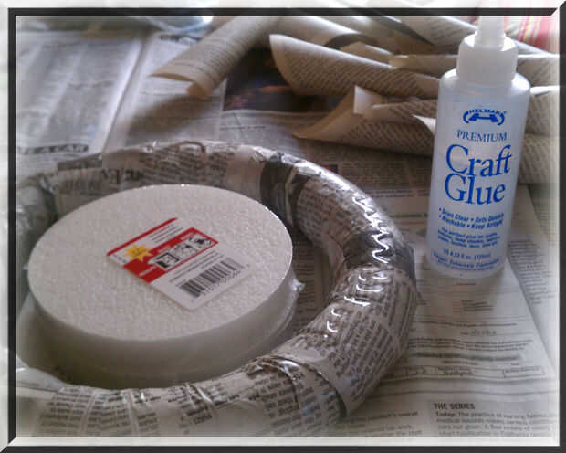 Usando pegamento de artesanía Helmar Premium permite un poco más lento seco para colocar y ajustar las páginas del libro en un círculo y colocar los puntos que te gustan. Seguir todo el camino alrededor de la corona añadir anchura y volumen. Necesitará tener un orificio de 5"- 6" todo en el centro.