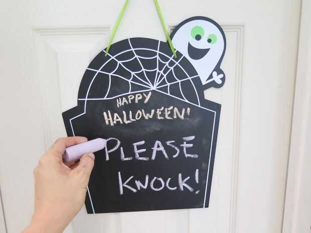 Es importante agregar un letrero que dice, "Golpee por favor!" o de lo contrario, mucha gente estará frente a su puerta confundido. Enroscar para que pueda permanecer atado durante el transporte. También añadido en algunas telas de araña falsas y cuando se pone más al día, se caliente pegamento algunos plástico errores así. Cute de los errores, sin embargo. :)