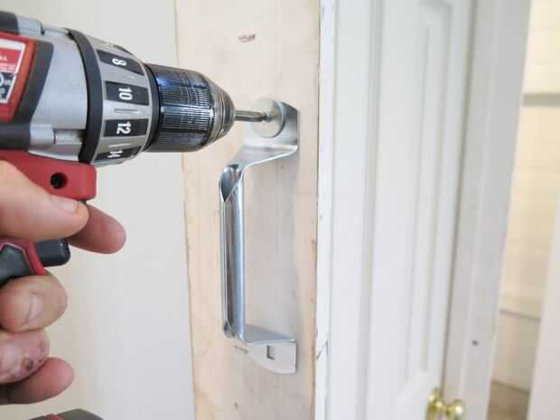 Este paso es opcional, pero encontré bastante Durán útil al moverse. He instalado dos manijas del lado de la estructura que tiene las bisagras. Para hacerlo, utiliza algunos mangos viejo y había jodido con arandelas. Esto hace fácil para dos personas llevan la puerta de su lado cuando se va de casa en casa.