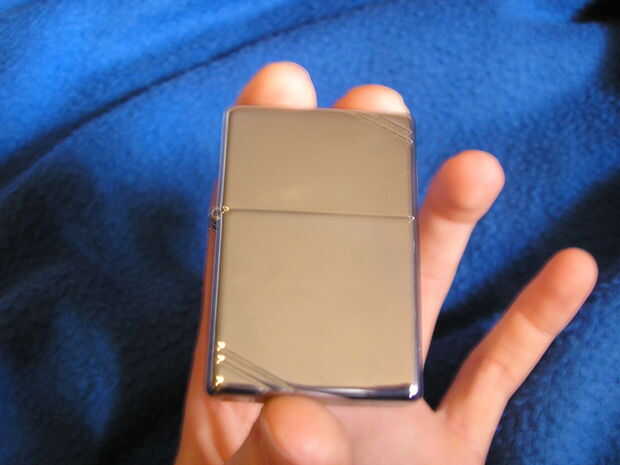 Ponga su dedo medio y el dedo de puntero en la parte superior y el pulgar en la parte inferior. Tienen la bisagra a la izquierda. Ahora en un movimiento rápido apriete con los dedos, dos dedos arriba Deslice hacia abajo y el pulgar se desliza hacia arriba. El zippo por arte de magia se abre.