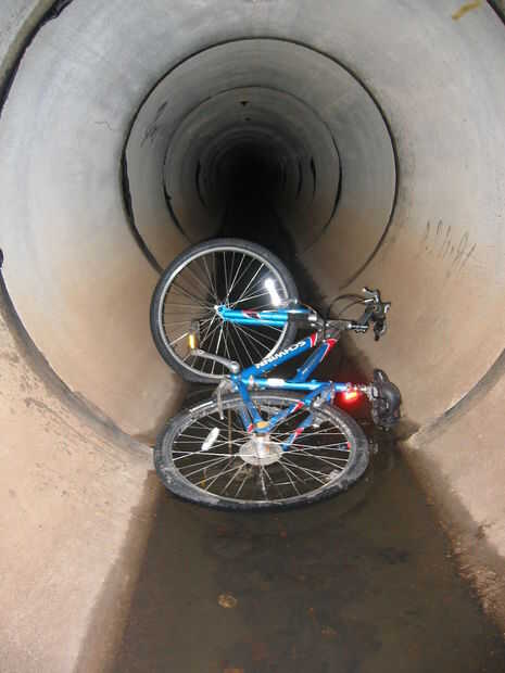 Vi reflexiones en el tubo cuando tomé estas fotos. Al parecer es un gran lugar para ocultar bicicletas robadas de compañeros también.
