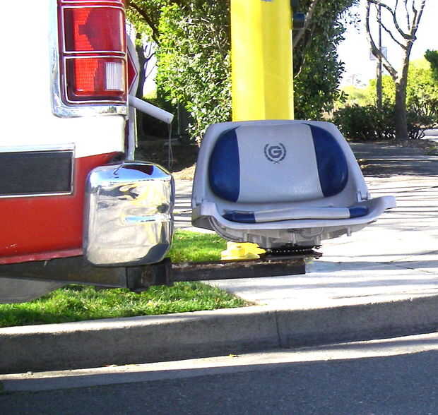 Soldado con autógena esta silla ingeniosa que se conecta a la toma de enganche de remolque de su camión.
