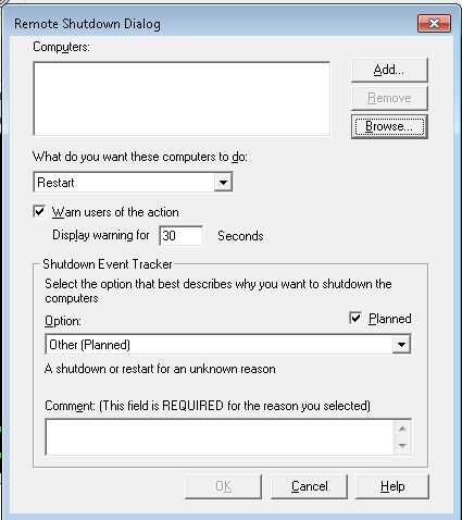 "shutdown.exe -i" para abrir una nueva pestaña que remotamente apagar una computadora en su red.