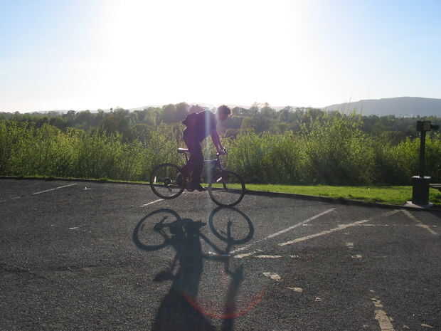 Me gusta desmontar ambos con gracia un poco y de una manera que implica un esfuerzo mínimo, mi favorito es definitivamente venir a lo largo y hacer pivotar una pierna la moto así que estoy parado en un solo pedal y mi otra pierna se encuentra detrás de mí, comenzar con las dos manos en el manillar, necesita apoyarse en mantener su equilibrio , eventualmente puede conseguirlo inclinándose sobre la bicicleta con una mano y un pie, que está bien para saludar gente y todo eso.