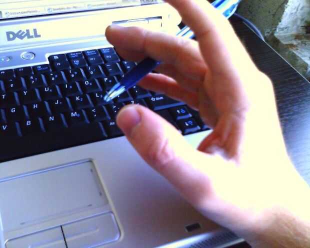 Empuje hacia abajo la pluma con el dedo medio, hasta que la presión necesaria se construye el punto o extremo se desliza desde donde descansa entre su dedo índice y pulgar. Cuando libera, la pluma se cohete hacia abajo.