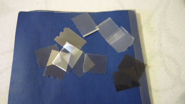 Si desmontar el módulo de color LCD de teléfono móvil viejo, tendrás algunas cosas interesantes: 2 (o más) de lentes de fresnel (que son grandes como óptica de generador de línea), algún tipo de plástico difusor de luz y 2 filtros de polarización (estos son dificiles de conseguir, estos debe rasgar de la parte de vidrio del LCD). Estoy mostrando en el siguiente video: