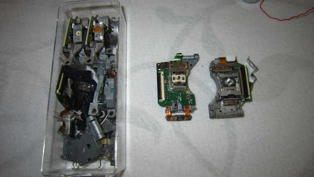 Siempre cuando tengo alguna vieja unidad de CD o DVD, totalmente copio todas las ópticas de él (aunque el diodo es inútil). A veces me sale alguna óptica bastante interesante Aquí estoy mostrando las rejillas de difracción de varios trineos (puedo recomendar el trineo PHR-803T, hay 2 de ellos)