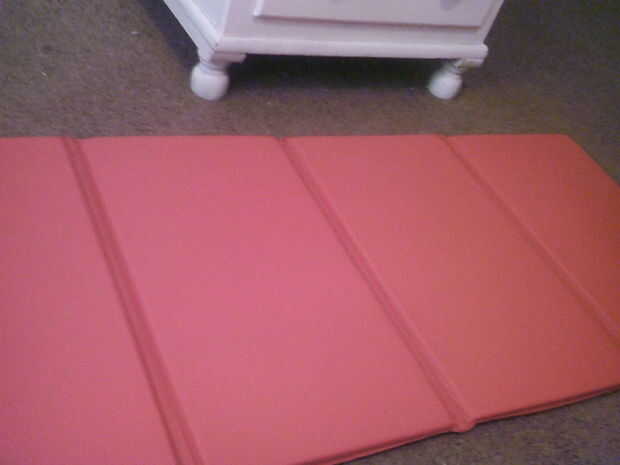 Abre la alfombra. Tiene cuatro secciones que están conectadas. Lo bueno de la estera es que se puede doblar para diferentes tamaños. Además, tiene un lado azul que es muy bueno para graficar la salida de mat en post.