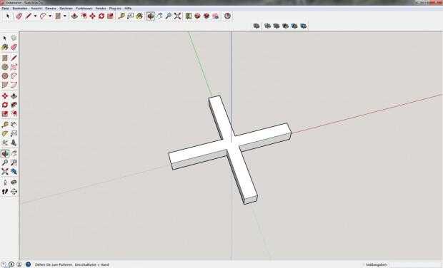 Vamos a empezar con una simple Cruz alta 100 x 100 y 20: