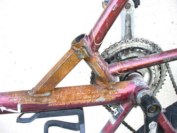 Se puede ver que es doblar el tubo del armazón del asiento delantero, otra abrazadera de tubo debe soldarse a triangular parte de la estructura.