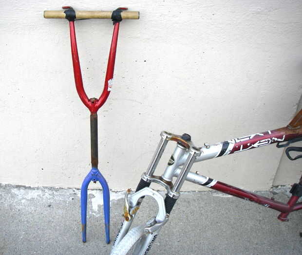 La disposición del manillar u horquilla se convirtió hacia fuera muy bien. Es fuerte y fue bastante fácil de hacer.