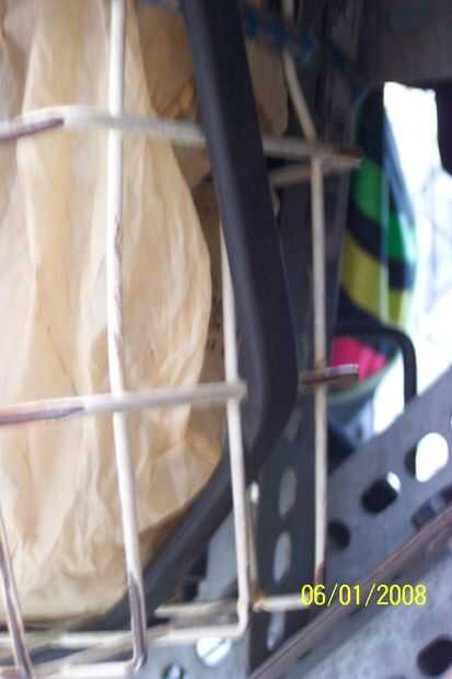 Hay un apoyo oculto detrás de la cesta blanca sobre el bastidor trasero,