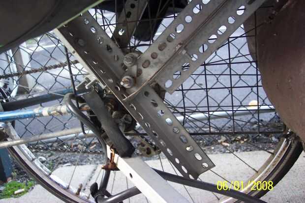 La cesta delantera y delanteras alforjas están soportadas por unistrut.
