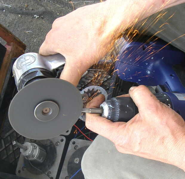 Una ranura en el medio de la rutina un flathead destornillador. No disparar chispas en el ojo.