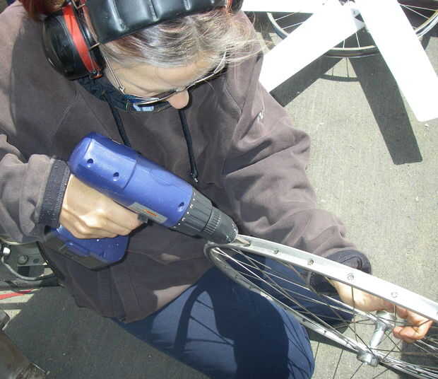 Luego girar los pezones habló de los radios con un taladro como Franziska.