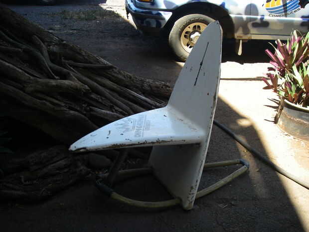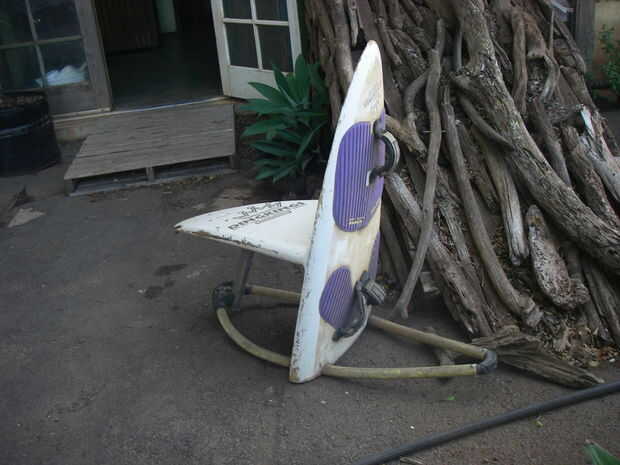 Aquí es una ingeniosa silla hecha de la vieja tabla de windsurf y auge.