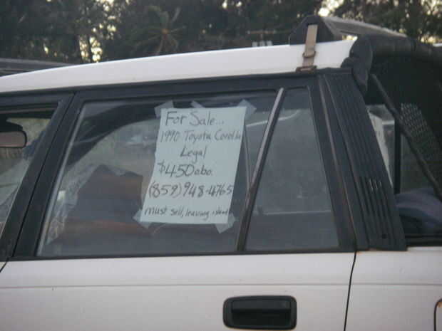 Un "crucero de Maui" es cualquier coche que todavía funciona. A diferencia del continente, muchas personas son orgullosos de conducir coches junky. Poco a poco. Una calcomanía popular dice "lento hacia abajo, esto no es el continente".