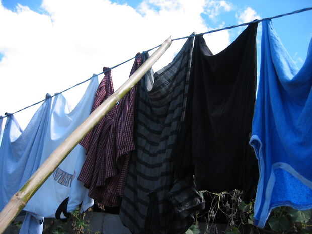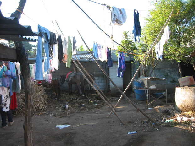 Las cuerdas colgando baja para facilidad de colgar la ropa. Luego utilizan estos postes oblicuas para sostener las cuerdas en lo alto del camino, donde la ropa que más luz del sol y la brisa. Dondequiera que vayas que ves a las mujeres lavar la ropa o barrer. Higiene personal parece ser una prioridad.