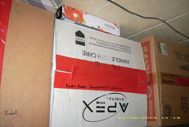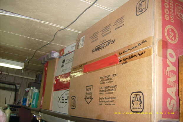 En un gabinete estoy almacenando cajas vacías que puedo necesito algún día a devolver productos defectuosos (guardo las cajas hasta que caduque la garantía) o para volver a empaquetar cosas para volver a vender cuando ya he terminado con él. Parece que es más fácil de vender cuando está en una caja. Una caja tiene chatarra de equipo de repuesto que probablemente nunca se uso. La tercera caja es un poco diferente porque tiene dos otras cajas dentro de ella para hacer compartimentos o separadores. Ninguno de estos gabinetes tienen cosas que acceder con frecuencia.