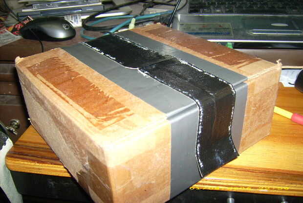 Desde cartón tiene una tendencia de laminar, necesitará tener una capa inferior de la cinta para su cinta "pestillo" a. La cinta inferior debe envolver alrededor del extremo de la aleta de cartón para evitar que sacar cuando tire de la cinta de cierre. Te darás cuenta si usted sólo tiene que utilizar un trozo de cinta de cierre en el centro que los extremos no están bien cerrados.