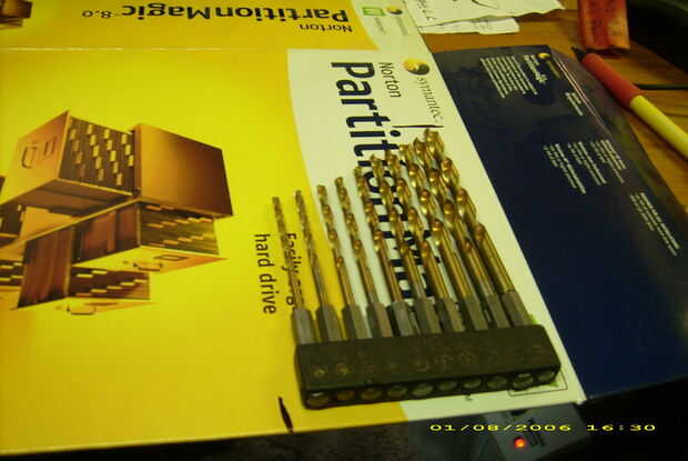 Aquí le damos un par de soluciones de cartón y cinta para mis hojas/bits. Mi antiguo protector de broca taladro fue conseguir bastante perdido así que hice uno nuevo para mostrar cómo. Utilizando fichas de cartón para reforzar ayuda a durar más tiempo.