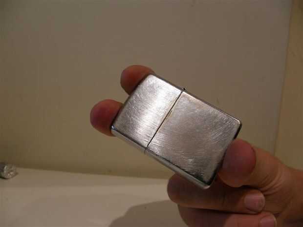 Índice y el dedo medio van en la parte superior del encendedor y el pulgar va en la parte inferior.