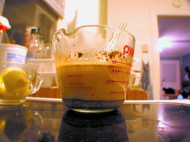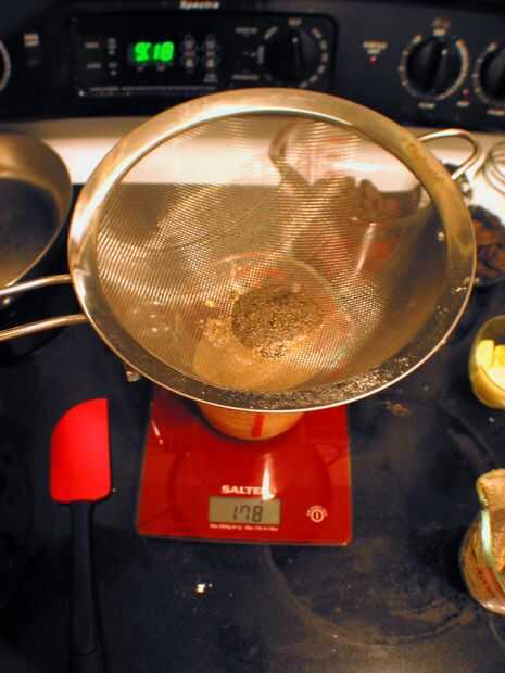 Filtrar la mezcla de crema de café en el recipiente de miel con el colador. Habrá disminuido el peso de la crema; Añadir crema adicional para traerlo hasta 206 gramos de nuevo.